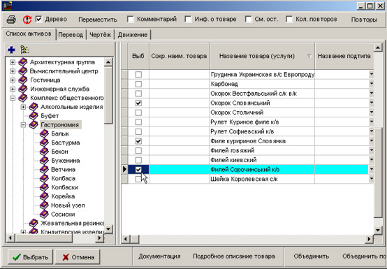 Виберіть позиції та натисніть кнопку Вибрати для вставки у документ.