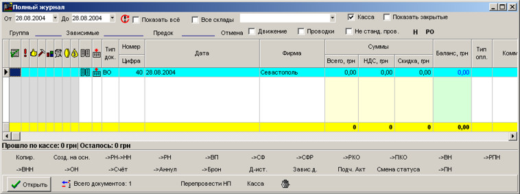 Щоб завантажити раніше створений документ, необхідно відкрити повний журнал. Для цього натисніть F5.