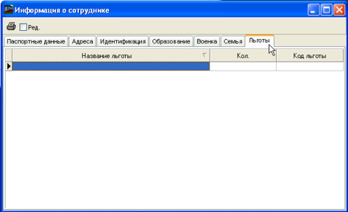 Щоб ввести інформацію про пільги, натисніть на закладці Пільги.
