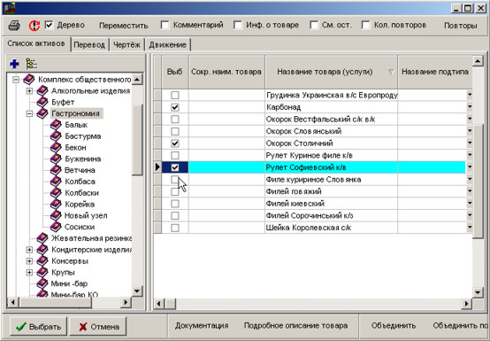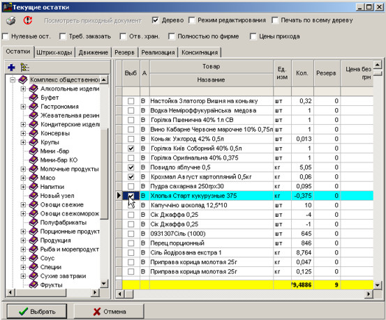 Виберіть товари та натисніть на кнопці Вибрати для вставки у документ.