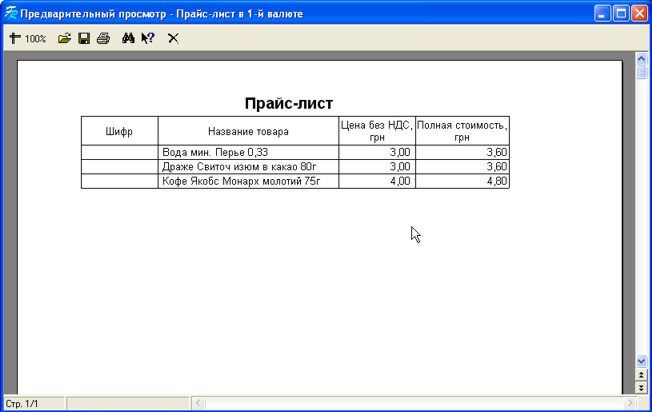 Для друку прайс-листа натисніть кнопку . На екрані з'являться звіти, які Ви можете роздрукувати.