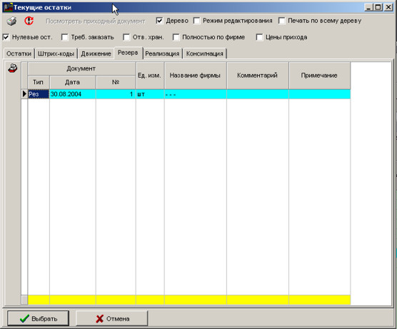 Щоб переглянути всі документи резервування за виділеною позицією, клацніть на закладці Резерв.