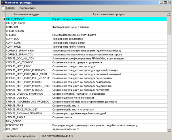 Для синхронізації назв процедур, що зберігаються, виконайте команду меню Адміністрація-> Користувачі-> Довідник процедур.