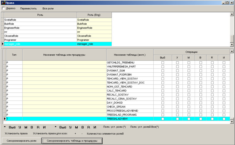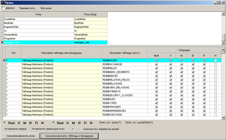 Синхронізувати ролі - синхронізація права в базі даних і в сервері бази даних Interbase (Firebird).