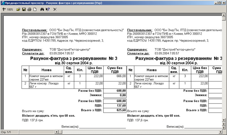 Щоб надрукувати рахунок-фактуру, натисніть на кнопці .