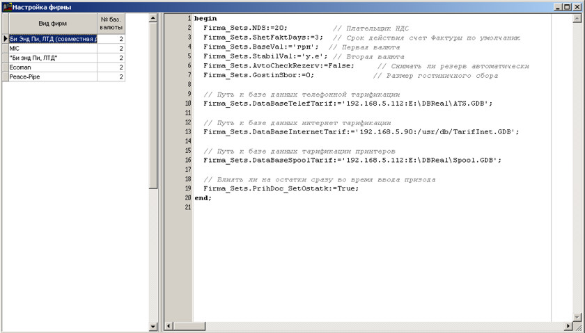 Розглянемо скрипт, налаштування внутрішньої фірми: