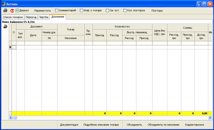 Праворуч виводиться таблиця зі списком активів (товарів, послуг тощо). Як працювати з таблицями читайте Робота з таблицями.