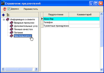 Довідник дозволяє створювати додаткову інформацію про клієнтів та партнерів. Ви можете вказувати, що клієнт віддає перевагу. Причому переваги можна додавати, видаляти та перейменовувати. Уподобання можна об'єднувати в деревоподібні групи за змістом.