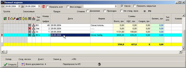 Завантаження документів здійснюється за допомогою повного журналу. Щоб викликати журнал, натисніть F5.