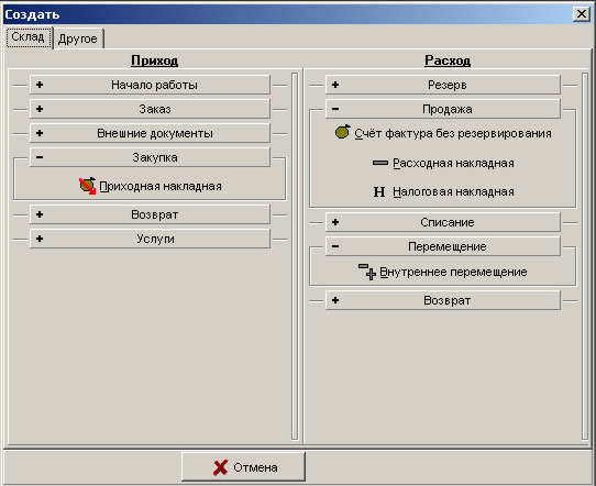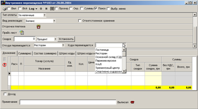 Щоб створити накладну на внутрішнє переміщення, натисніть кнопку F4. Відкрийте групу Переміщення.
