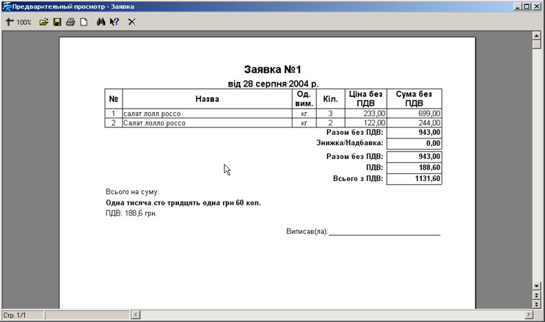 Клацніть на кнопці Заявка для створення документа.