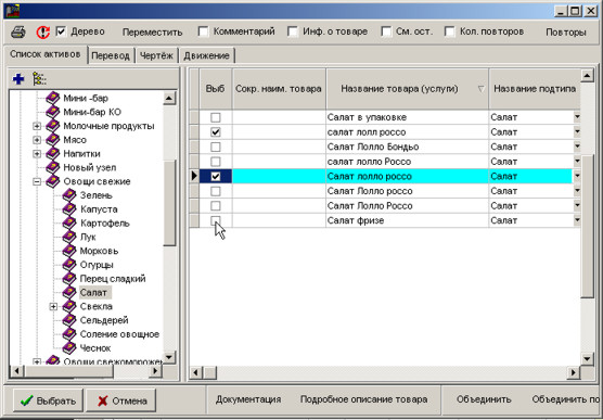 Виберіть позиції та натисніть на кнопці Вибрати для вставки в заявку.