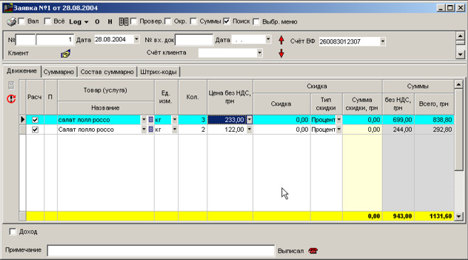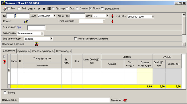 Для створення заявки натисніть F4. Виберіть групу Замовлення.
