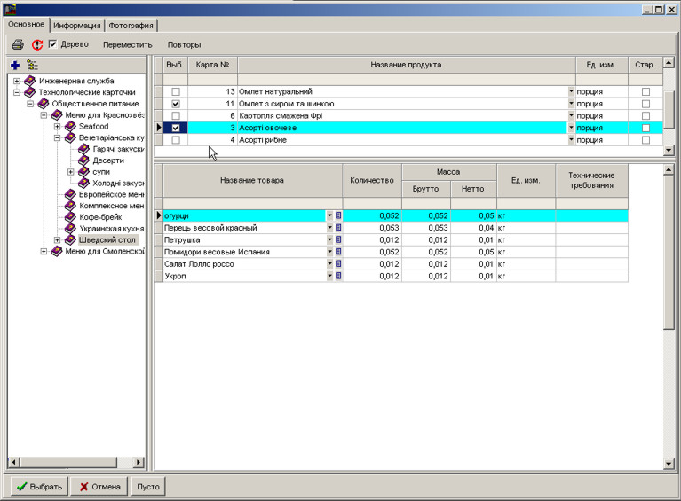 Для того, щоб формувати замовлення по меню, позначте галочку. Вибрати. Меню. Зліва у вікні з'явиться таблиця введення меню.