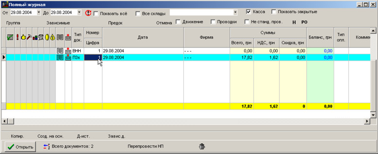 Будь-який документ можна завантажити через повний журнал. Для цього натисніть кнопку F5. Документ планування закупівель у повному журналі відзначається як ПЗК.