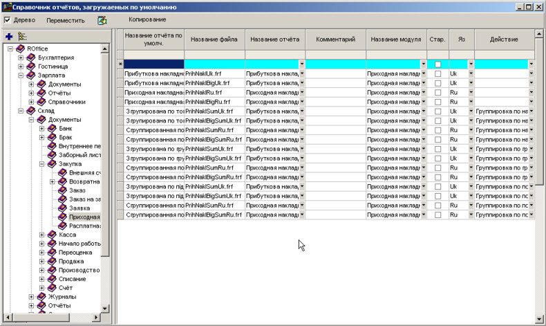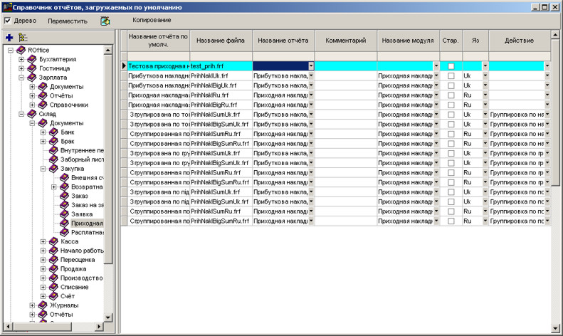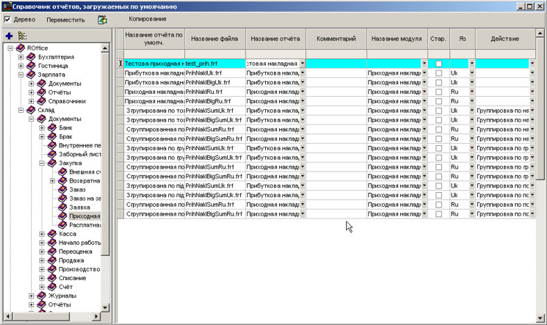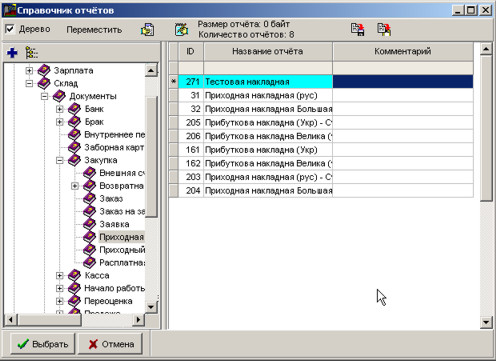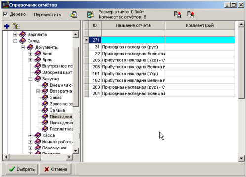 У довіднику звітів знайдемо гілку прибуткової накладної. Перейдемо на таблицю та натиснемо Insert для вставлення нового звіту (не забудьте попередньо перейти в режим редагування за допомогою комбінації клавіш Ctrl+F).