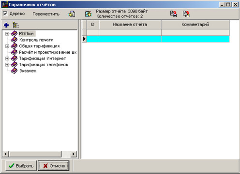 Натисніть кнопку Вибрати для вставки довідника звітів за замовчуванням.