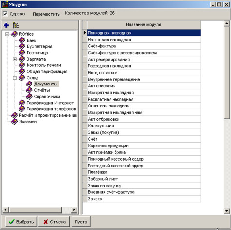 Виберіть модуль Прибуткова накладна та натисніть на кнопку Вибрати.
