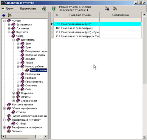 Усі звіти згруповані у дереві за змістом.