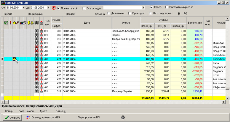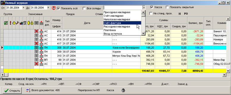 Повний журнал призначений для перегляду існуючих документів, завантаження їх, видалення, а також створення документів на підставі.
