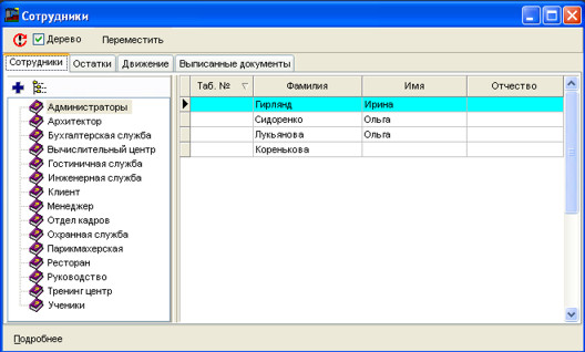 Зліва Ви можете сформувати дерево співробітників. Наприклад, розбивати за підрозділами.