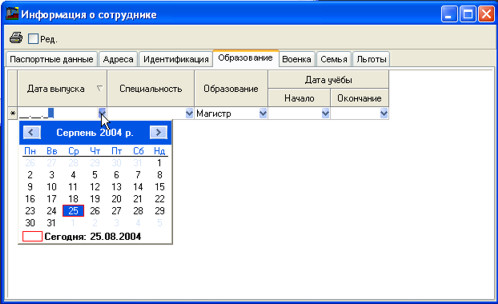 Інформація про освіту працівника вводиться на закладці Освіта.
