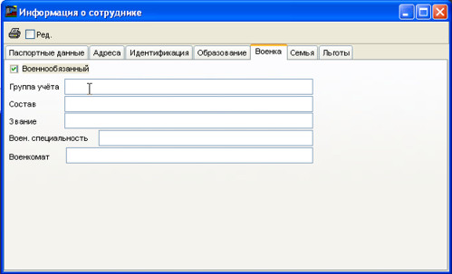 Інформацію про військовий облік необхідно задавати на закладці Війська.