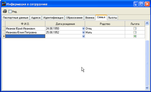 Інформацію про сім'ю та рідних можна ввести на закладці сім'ї.