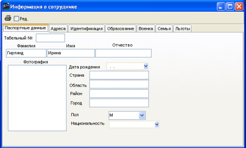 У цьому вікні Ви можете зазначити паспортні дані співробітника.