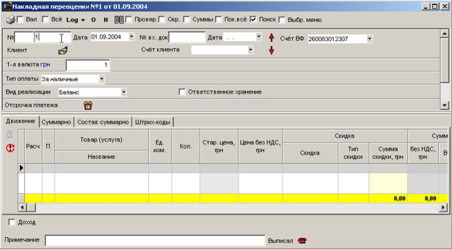 Для створення накладної переоцінки товару натисніть кнопку F4. Клацніть на закладці Інше. Відкрийте групу кнопок Переоцінка.