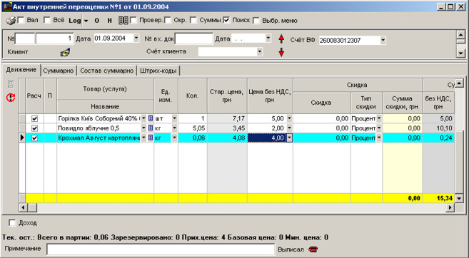 Для внутрішньої переоцінки призначений Акт внутрішньої переоцінки. Для зовнішньої переоцінки - Накладна переоцінка товару.