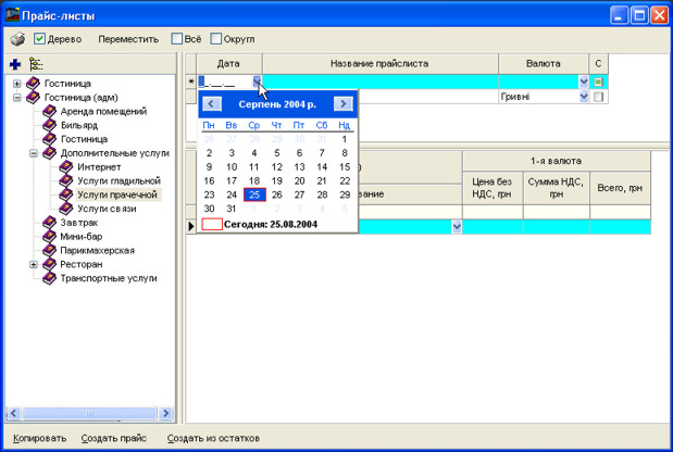 Введіть або виберіть дату прайс-листу.