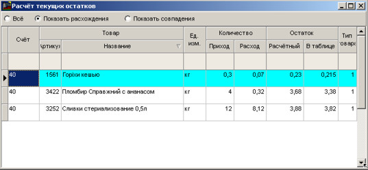 Позиції, які не зійшлися, будуть виведені в таблиці.