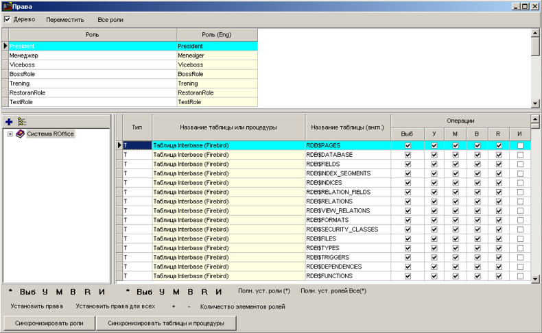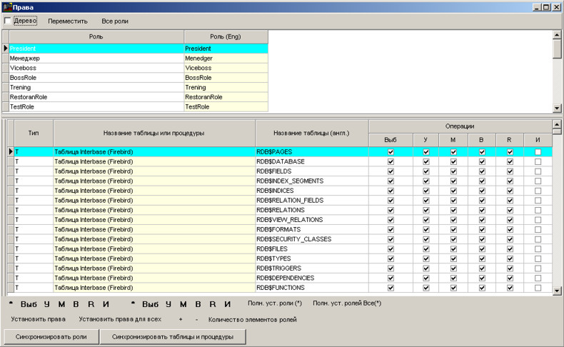 Синхронізувати ролі - синхронізація права в базі даних і в сервері бази даних Interbase (Firebird).