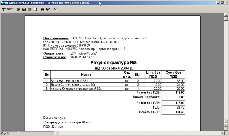 Щоб надрукувати рахунок-фактуру, натисніть на кнопці .