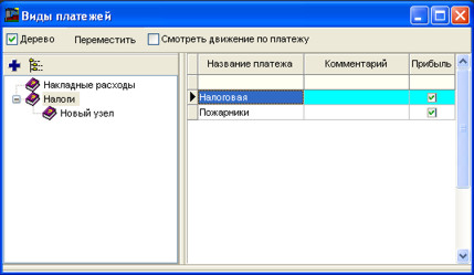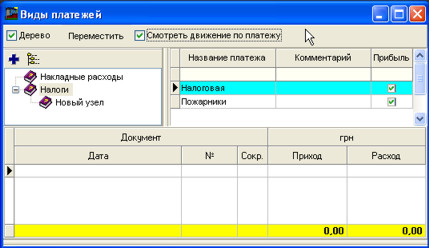 Зліва Ви можете формувати дерево платежів, а праворуч таблиці - Вказувати назви платежів.