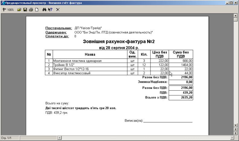 Зовнішній рахунок-фактуру можна роздрукувати. Для цього клацніть на кнопці друку .