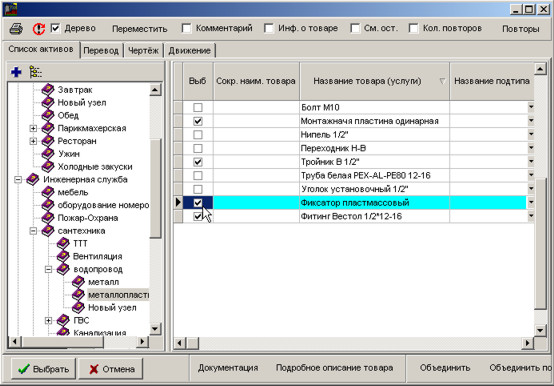 Виберіть товари та натисніть кнопку Вибрати для вставки у документ.