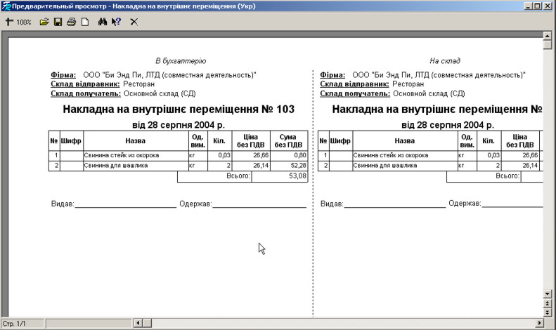 Переміщення товарів усередині підприємства оформляється накладною на внутрішнє переміщення.