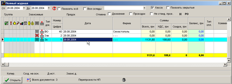 Для того, щоб завантажити раніше створену заявку, відкрийте повний журнал F5. Документ у повному журналі зазначається Зк.