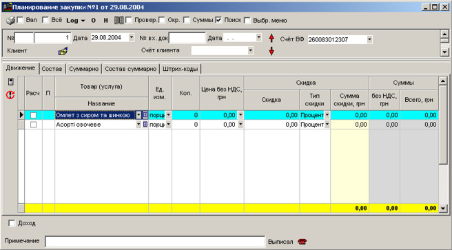 За допомогою цього документа Ви можете розрахувати за меню та технологічними картами скільки потрібно товару для закупівлі.